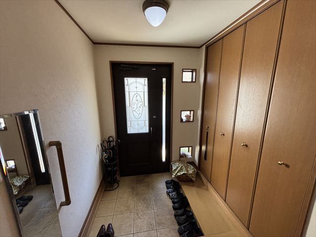 敷地面積約61坪、建物延床面積約64坪の2世帯住宅です。1枚のドアで行き来ができますので、ご高齢の親御さんが一緒でも安心です。