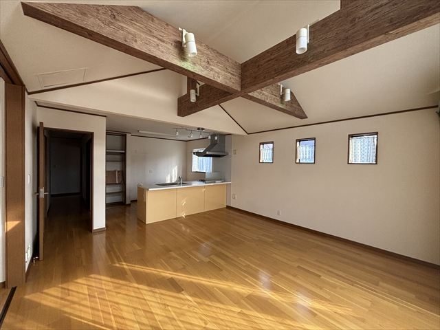 広々とした延床面積211.25㎡の居室空間、更に高い天井のヌケ感が心地よい吹抜があるので高い天井が空間の広さを一層印象付けます。小屋裏収納もたっぷり空間。